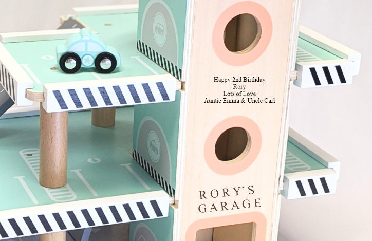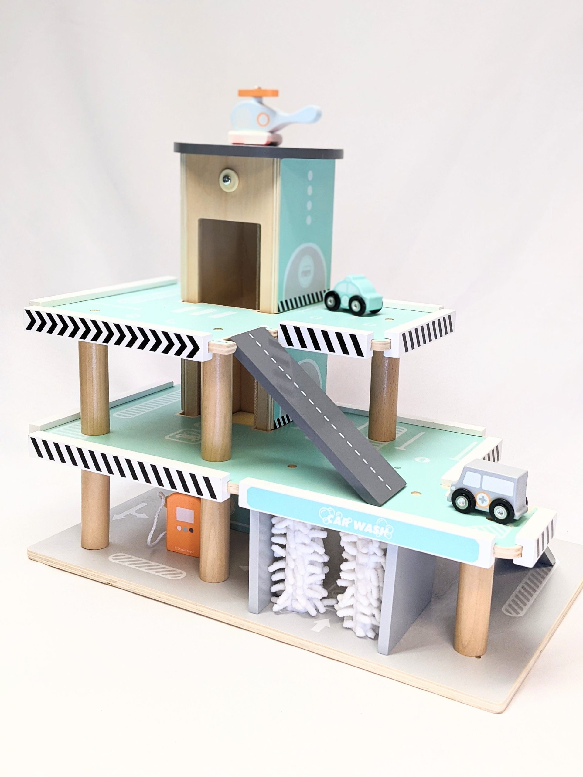 This beautifully designed wooden car garage comes with everything you need for hours of fun!