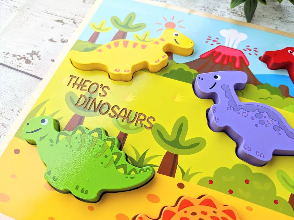 Personalised Puzzle • Kids Games • Wooden Toy • Baby Puzzle • 1st Birthday Present • Dinosaur Gift • Toddler Christmas Gift