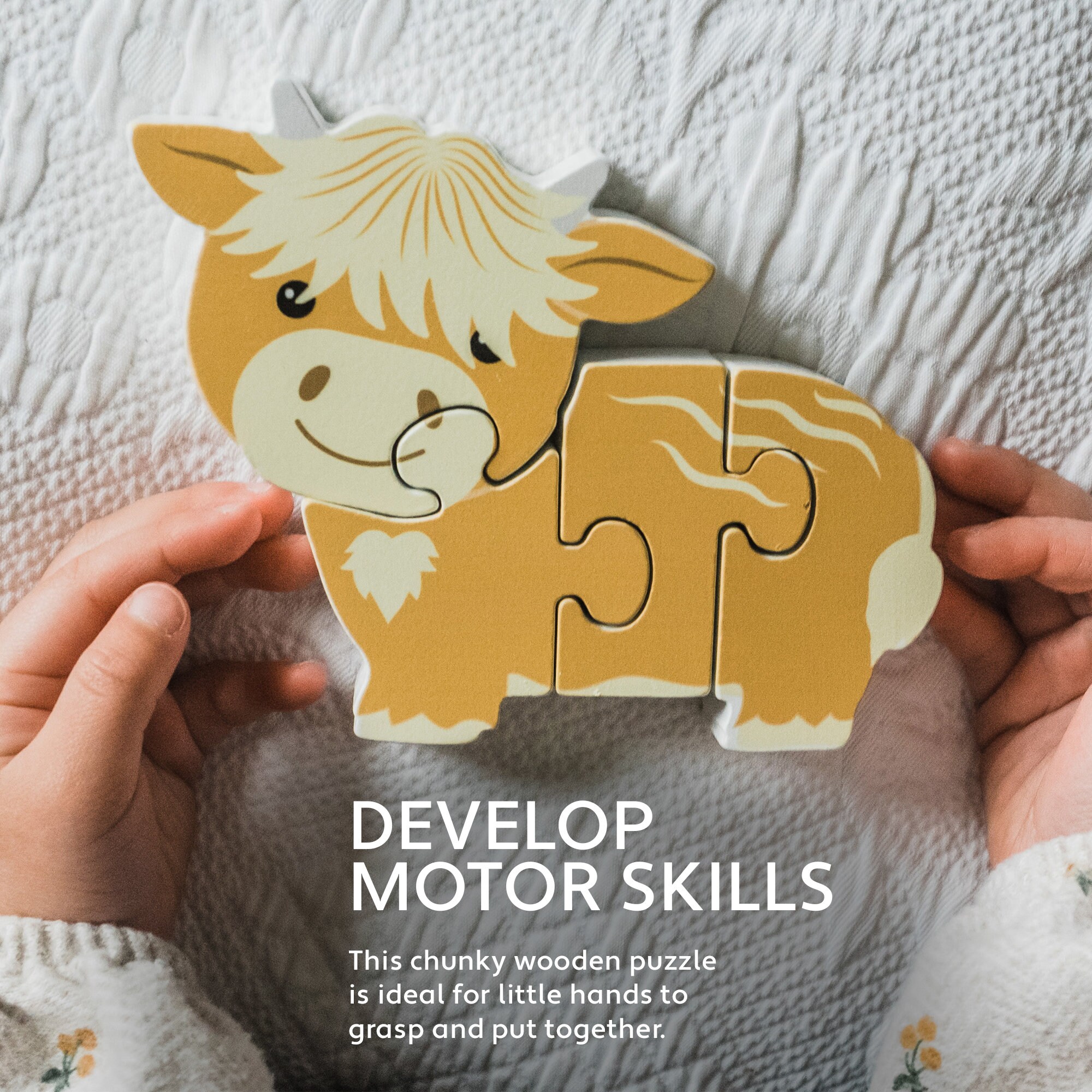 Introducing our chunky wee highland cow puzzle! We have other animals in the shop from peter rabbit to triceratops too! Each puzzle comes in their own cotton drawstring bag to keep the bits safe which makes them perfect for taking out and about with you. They also make a wonderful Christmas eve box filler too!
