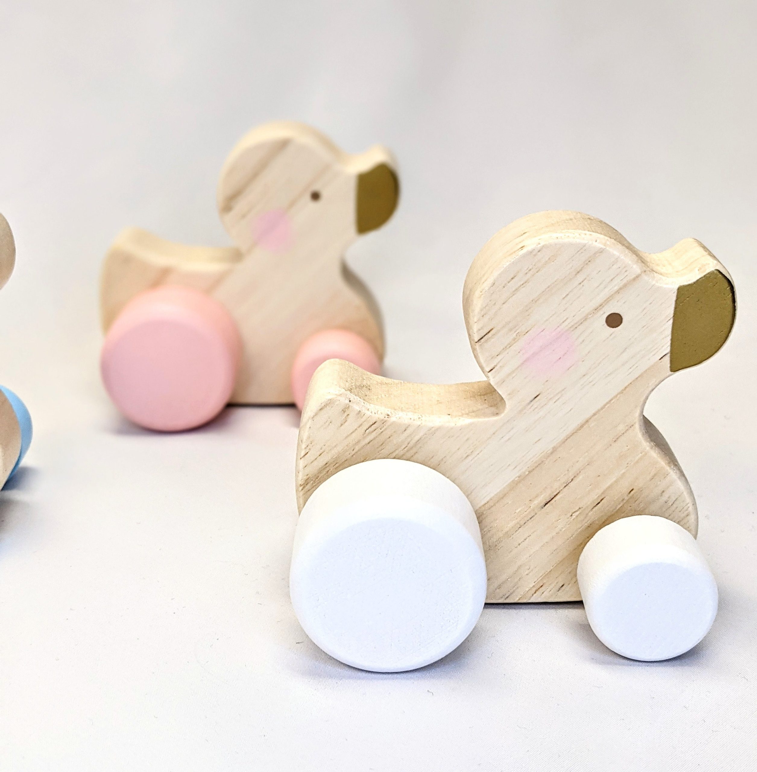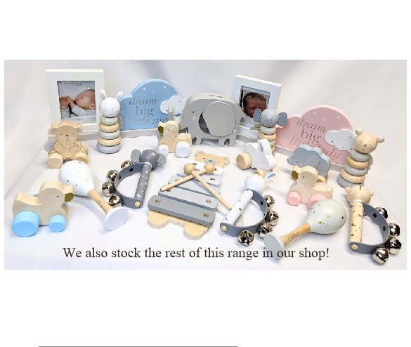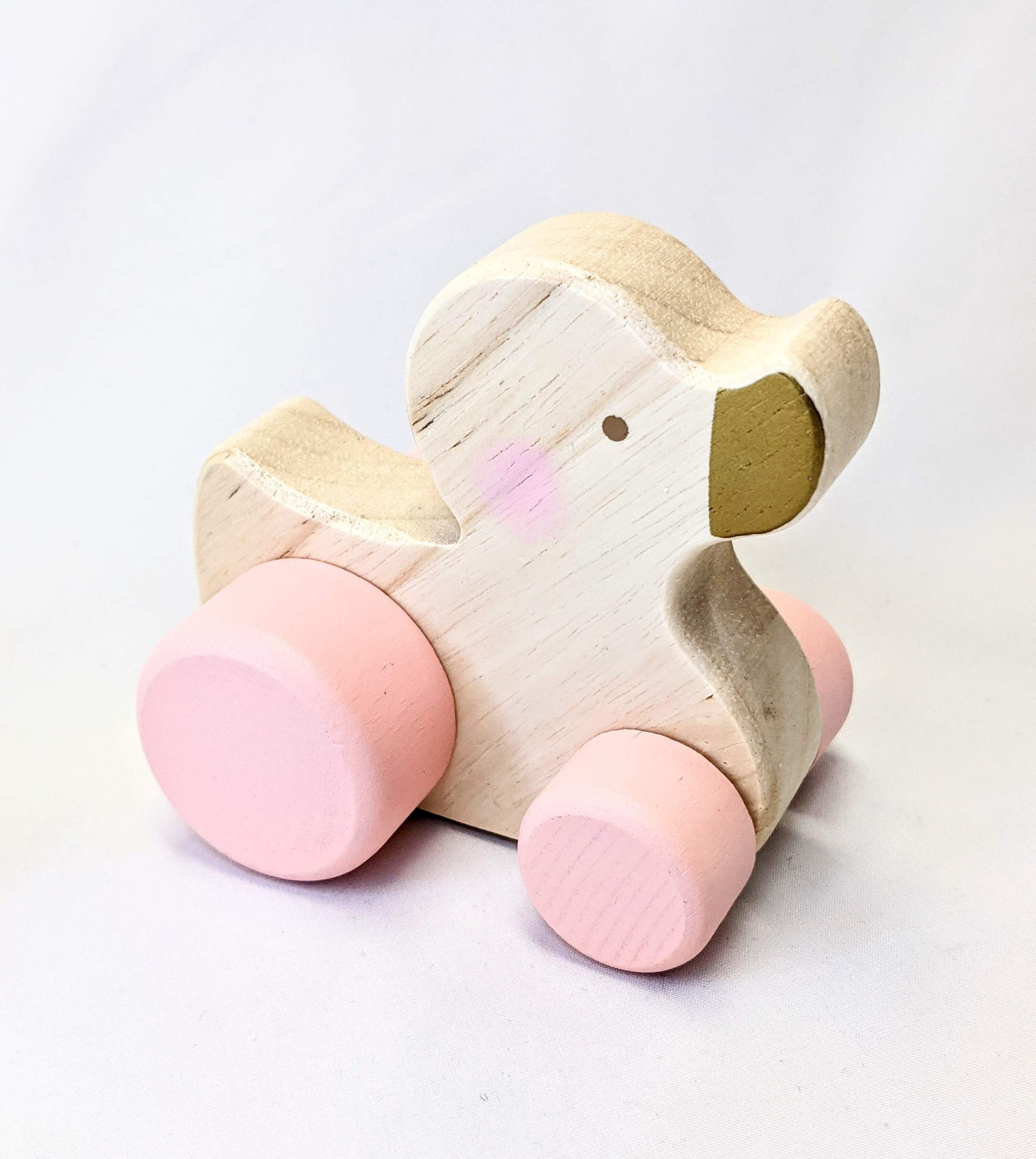 These beautifully designed and pastel coloured push along duck are great for younger children. It is nice and chunky making it easier to hold in those chunky little hands!